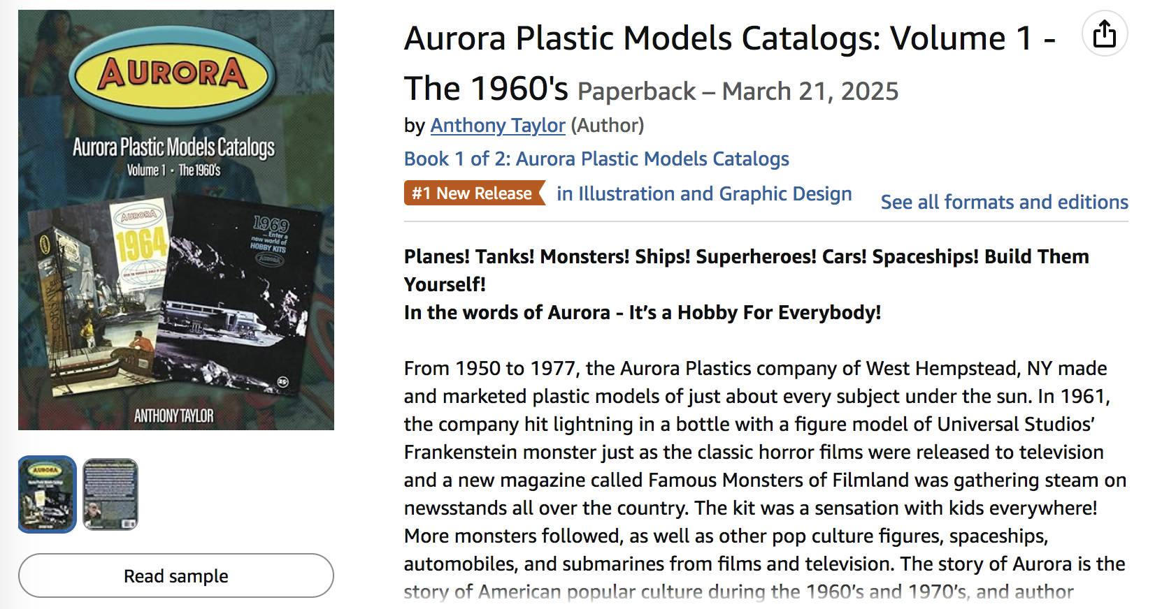 Aurora Plastic Models Catalogs Volume 1 is the Number 1 New Release on Amazon in the Craft & Hobby category on Kindle! The printed books are available there as of Friday. Wow, does this mean I’m now a “Best Selling” author? :)
